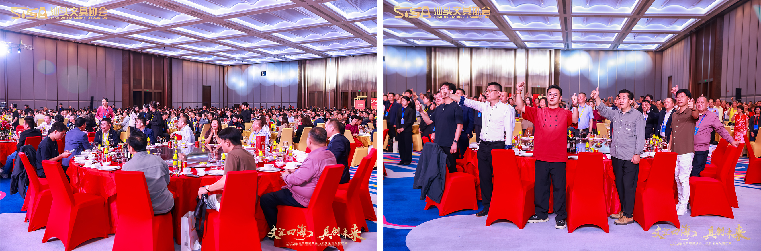 当晚,2025 汕头国际文具礼品展览交流晚宴盛大举行,近两千名全球行业嘉宾齐聚一堂,现场高朋满座,气氛热烈,共同见证了这场属于文具人的辉煌盛宴。