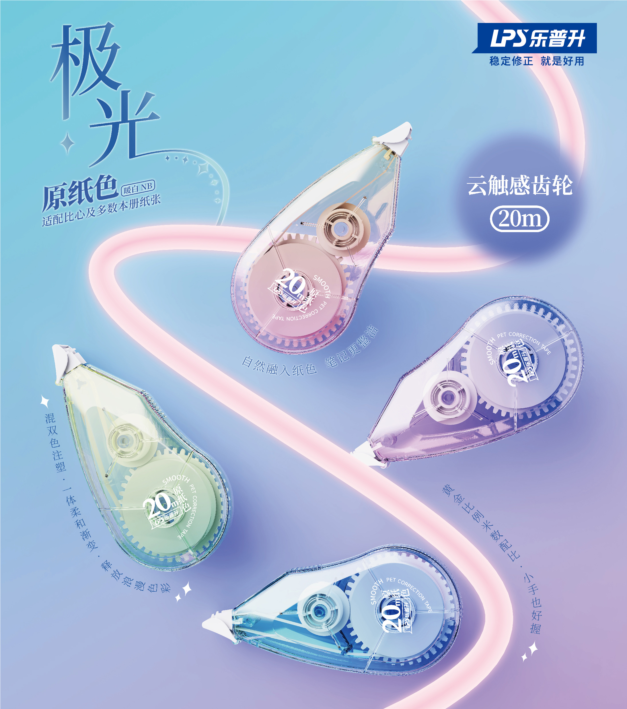 乐普升「极光」原纸色修正带——让每一次修正,都轻如光影,静若无声。