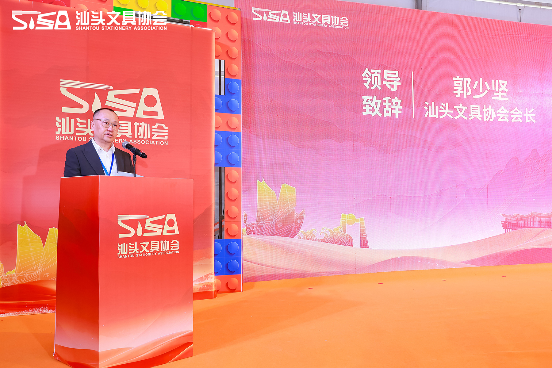 广东乐普升文具有限公司董事长、汕头文具协会会长郭少坚在开幕式上致辞,强调汕头文具产业正积极推动绿色化、智能化、品牌化转型,致力于实现从“制造”到“创造”的跨越发展。