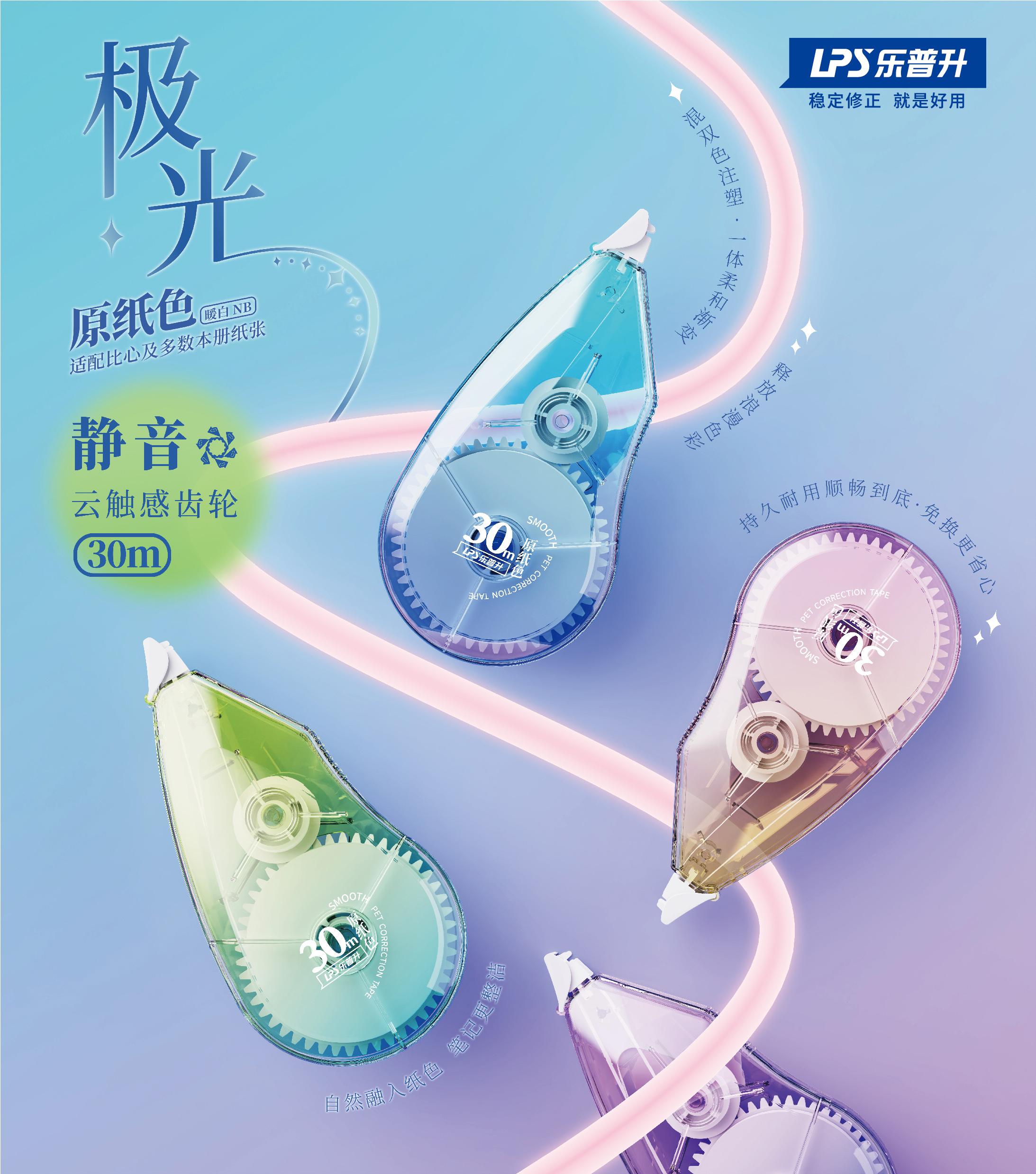 乐普升「极光」原纸色修正带——让每一次修正,都轻如光影,静若无声。
